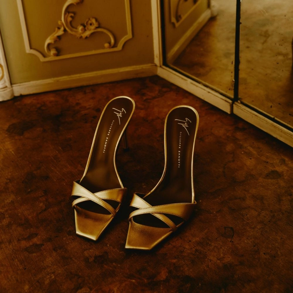 Balmain “Diva” sandal in stretch straps and calfskin.
