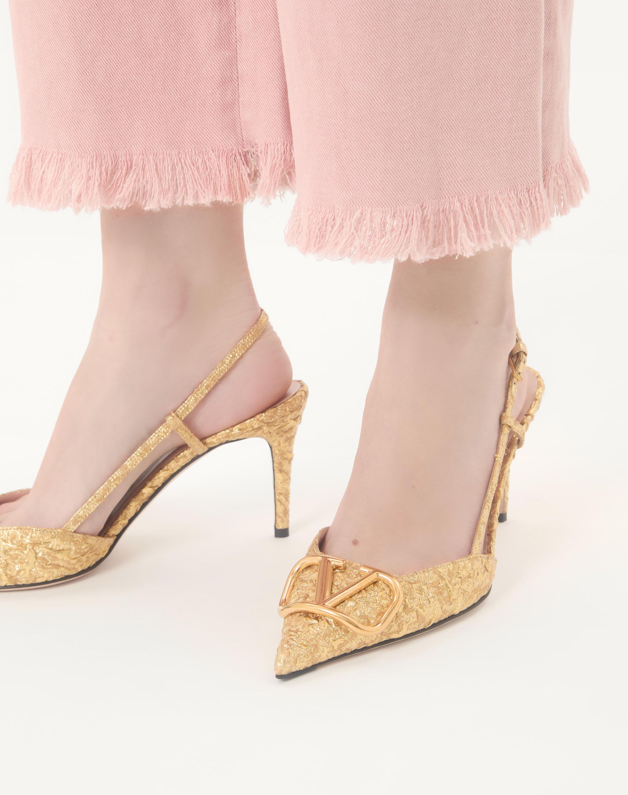 Valentino Garavani VLogo Signature slingback pump in cloqué jacquard fabric.